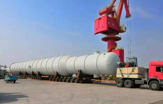該船貨物是廣利港腹地企業(yè)定制的“脫乙烷塔”和“丙烯丙烷塔”,最大件長56米、體積1144立方米、件重280噸。貨物自大連旅順港裝船,通過水路聯(lián)運的方式,經(jīng)廣利港轉(zhuǎn)運至企業(yè),使公路運輸?shù)木嚯x縮減至最低,極大降低了企業(yè)的運輸成本