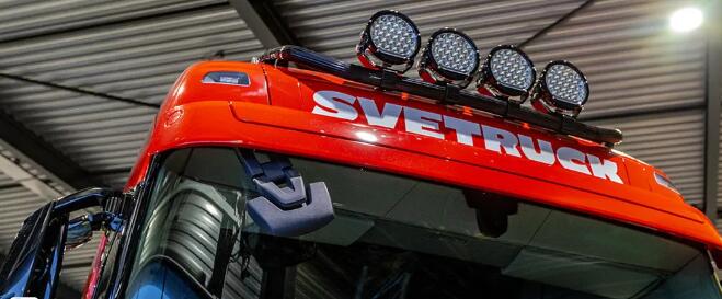 在大件包頂部,車輛也安裝了高亮LED燈,并附加了兩個(gè)沃爾沃原車尾燈,增強(qiáng)可見(jiàn)度和安全性。在條形LED燈的上方,SVETRUCK字樣被鏤空,視覺(jué)效果極佳。