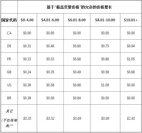每個配送國家/地區(qū)允許的價格增長取決于該產(chǎn)品的”最高變量價格“。