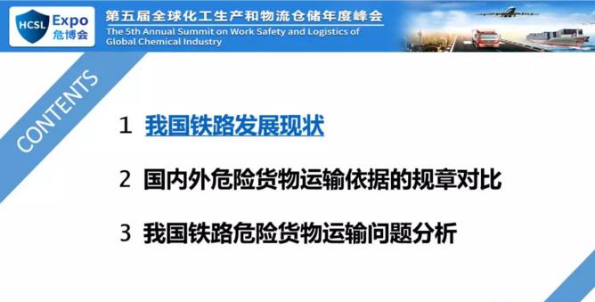 說到問題這一塊,我們目前的解決方案就是目前一帶一路的解決方案還是回到頭里。我們的解決方案是正好國家標準委去年要對整個危險化學(xué)品的規(guī)章做標準的規(guī)章體系,王總是組長之一,我代表鐵路行業(yè)參加了。當(dāng)時我知道這個事很高興,我提出了六大標準體系,主要是從廠商標準、工具標準以及人員標準等,這兩天看國際友人說了很多,對我們的人員不夠,還有包裝標準和裝卸標準,這六個標準拿下來以后,應(yīng)是和國際接軌了。就講到這兒,謝謝大家。