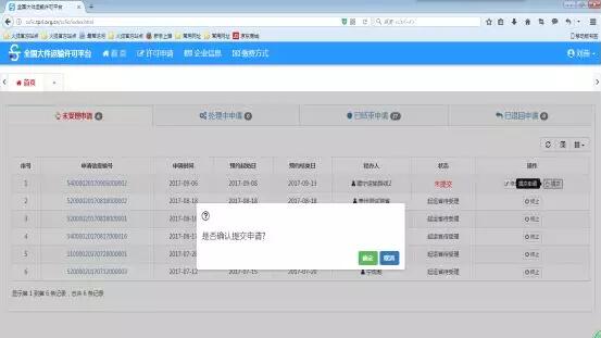 5)、提交申請(qǐng),保存申請(qǐng)信息后頁(yè)面自動(dòng)跳轉(zhuǎn)至首頁(yè),可在未受理申請(qǐng)列表中對(duì)其進(jìn)行修改、刪除、提交操作;