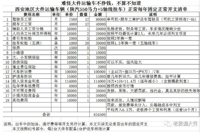 前幾日,有朋友想入行大件運(yùn)輸,筆者以西安地區(qū)五橋滿輪車為例,做了簡(jiǎn)單測(cè)算,結(jié)果讓人倒吸一口涼氣,難怪大件運(yùn)輸車不掙錢,真是不算不知道,原來(lái)我們的毛利潤(rùn)跑到這里去了。