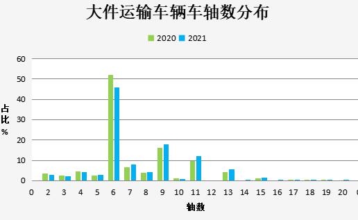 圖 2021年和2020年大件運(yùn)輸車(chē)輛車(chē)軸數(shù)分布對(duì)比